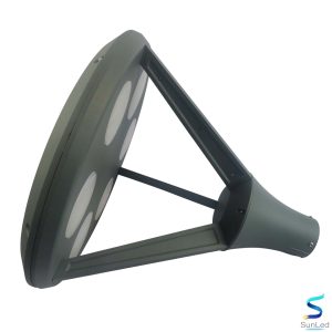 Hình mẫu đèn có thiết kế tinh gọn, sang trọng, sử dụng hợp kim nhôm đúc sơn tĩnh điện giúp chống oxy hóa, bền bỉ dưới mọi điều kiện thời tiết.